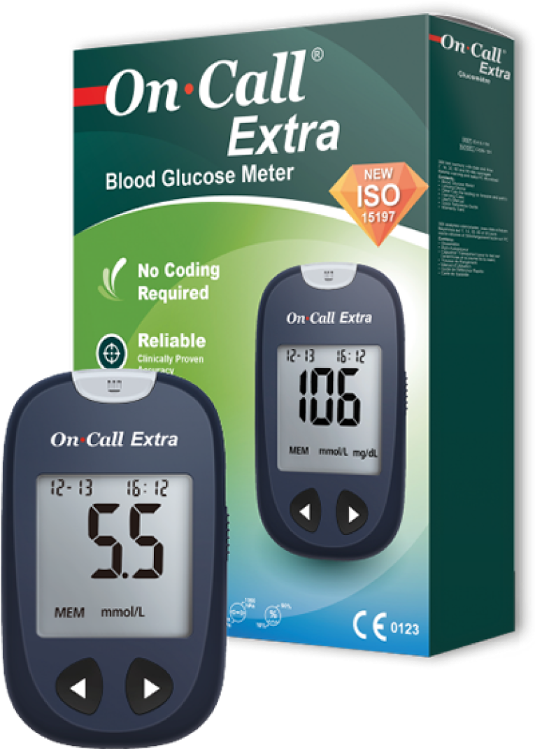 El sistema de control de glucosa en sangre On Call ® Extra ofrece funciones fáciles de usar para un control más sencillo de la diabetes a precios competitivos.